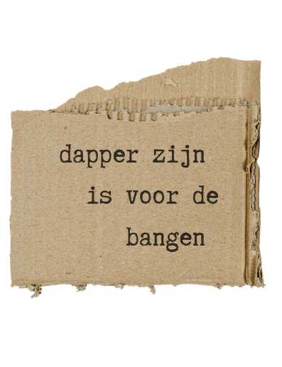 We blijken na dat moment nog veel dapper te moeten zijn. Het wordt ons mantra en komt ook vaak terug in deze bundel. Dapper zijn is immers voor de bangen.